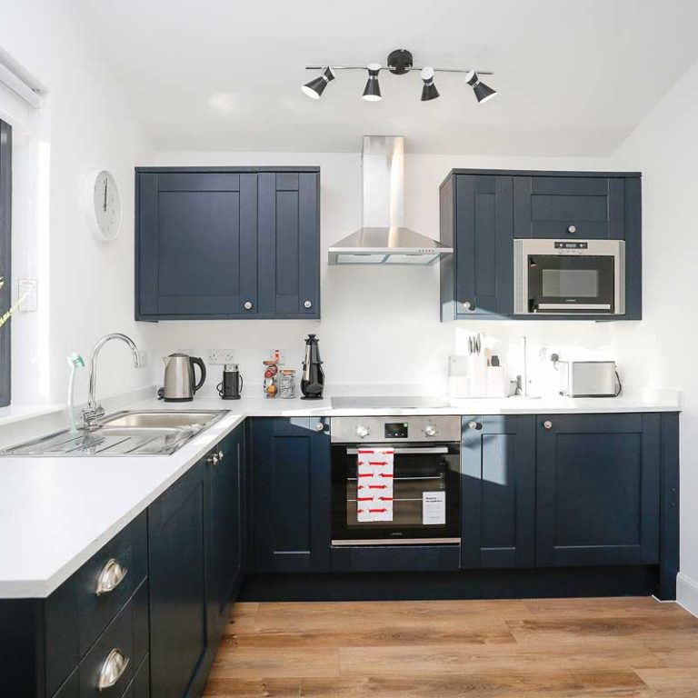 - Kitchen with fridge, oven and microwave